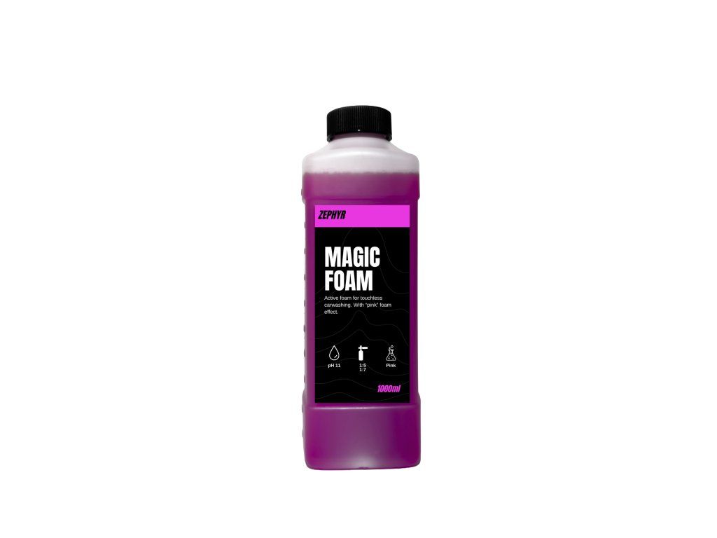 Proměňte mytí vozu v barevnou show. Zephyr Magic Foam je vysoce koncentrovaná aktivní pěna, která vás na první pohled zaujme svou sytě růžovou barvou. Díky unikátní technologii okamžitě vidíte, kde pěna působí, což zajišťuje 100% pokrytí povrchu bez vynechaných míst.