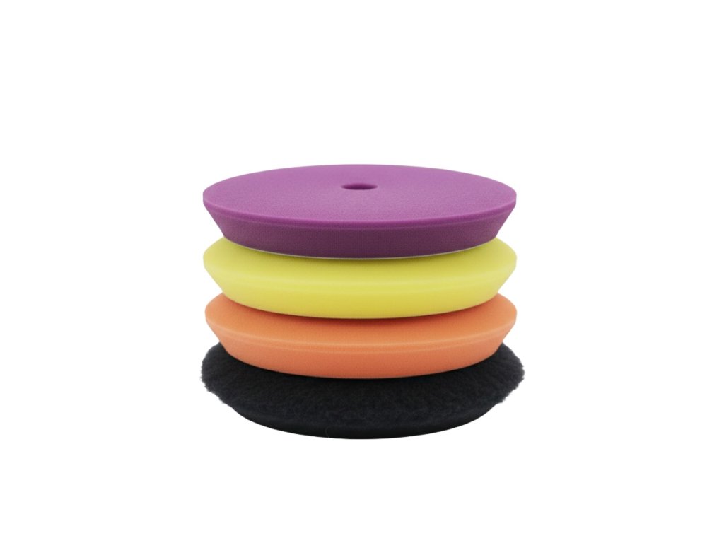 1x Hard Pad (Fialový): Tvrdý pěnový kotouč. Ideální pro efektivní korekci laku a rychlé odstranění běžných škrábanců.